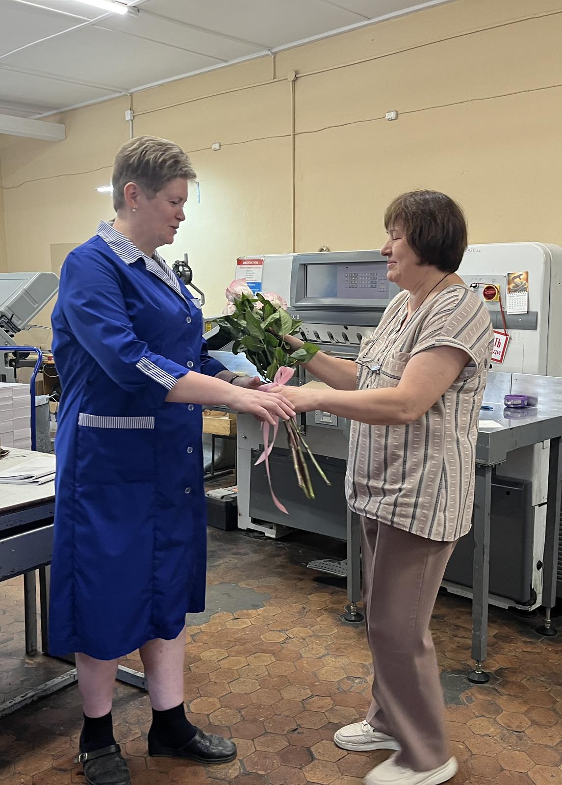 Руководитель ГОУПП «Слонимская типография» Чищеня В.В. совместно с председателем профкома Вавришевич Ю.В. поздравили женщин типографии с «8 Марта».